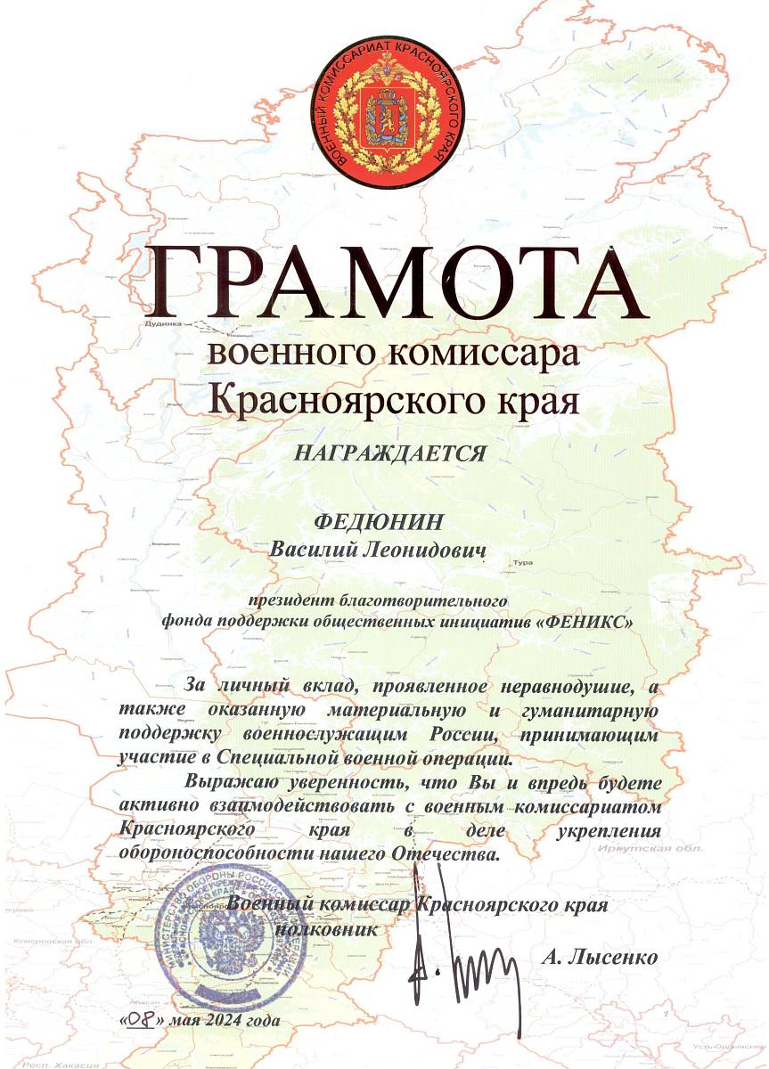Наш президент Федюнин Василий Леонидович является председателем комиссии "Общество" Общественной палаты г.Красноярск Мы абсолютно открыты к инициативам, которые будут рождены за пределами нашего фонда, мы всячески готовы оказать содействие и поддержку всем амбициозным важным социальным проектам и их идейным вдохновителям.